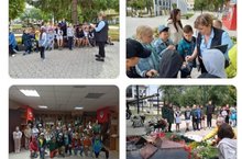 Для воспитанников лагеря активистами "Движения первых" был организован митинг, который прошел в Парке Победы. Сотрудники Центральной детской библиотеки для 1-4 отрядов организовали экскурсию по парку Победы, ребята из 2-3 отрядов посетили Музей Боевой славы.