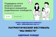 Завершился второй сезон Конкурса инициатив родительских сообществ Российского Общества “Знание” и Министерства просвещения Российской Федерации. МБОУ «Алексеевская СОШ №2» вошла в число победителей с проектом родительского комитета патриотического фестиваля «Мы вместе!». На реализацию выделена денежная премия