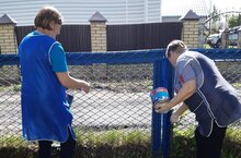 Сегодня сотрудники школы организовали косметическую покраску забора и уборку пришкольной территории.