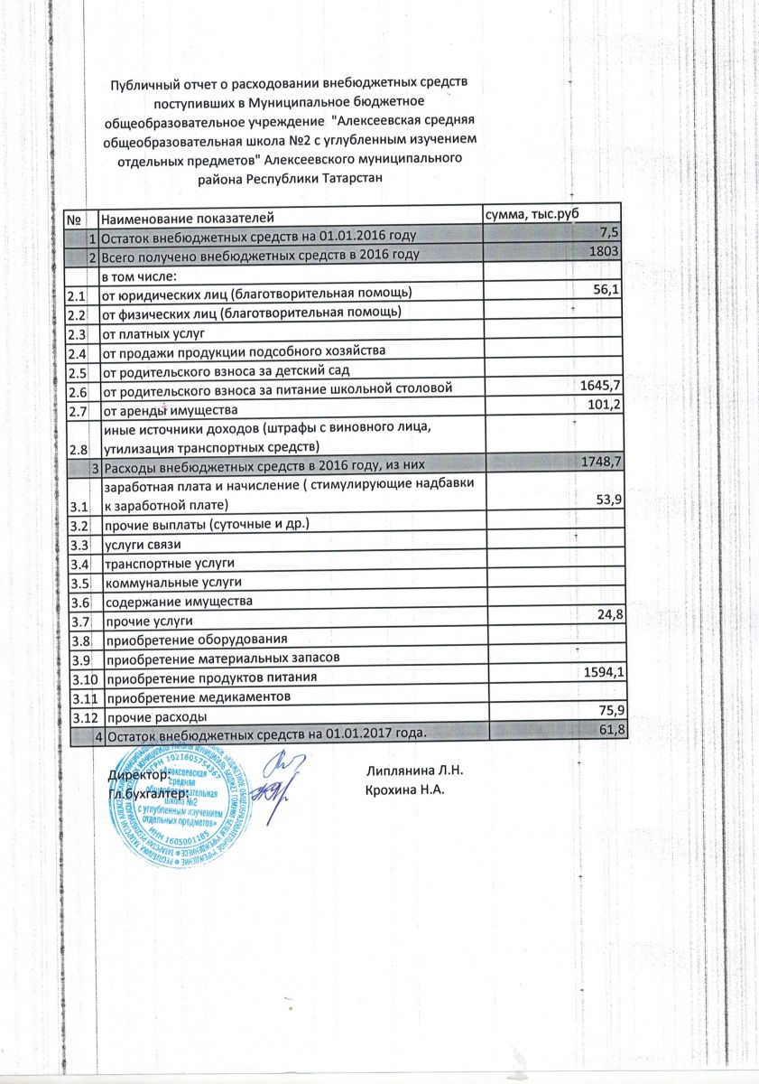 Публичный отчет о расходовании внебюджетных средств 2016 год