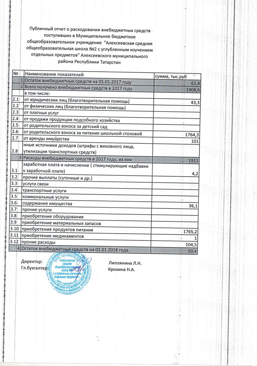 Публичный отчет о расходовании внебюджетных средств 2017 год