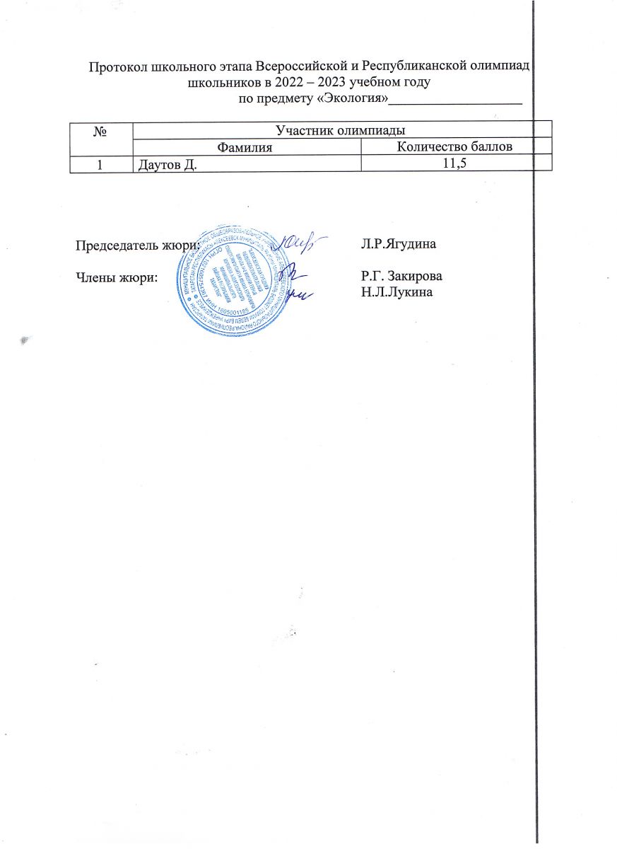 - Протокол по предмету "Татарский язык для русскоязычных учащихся школ с русским языком обучения"