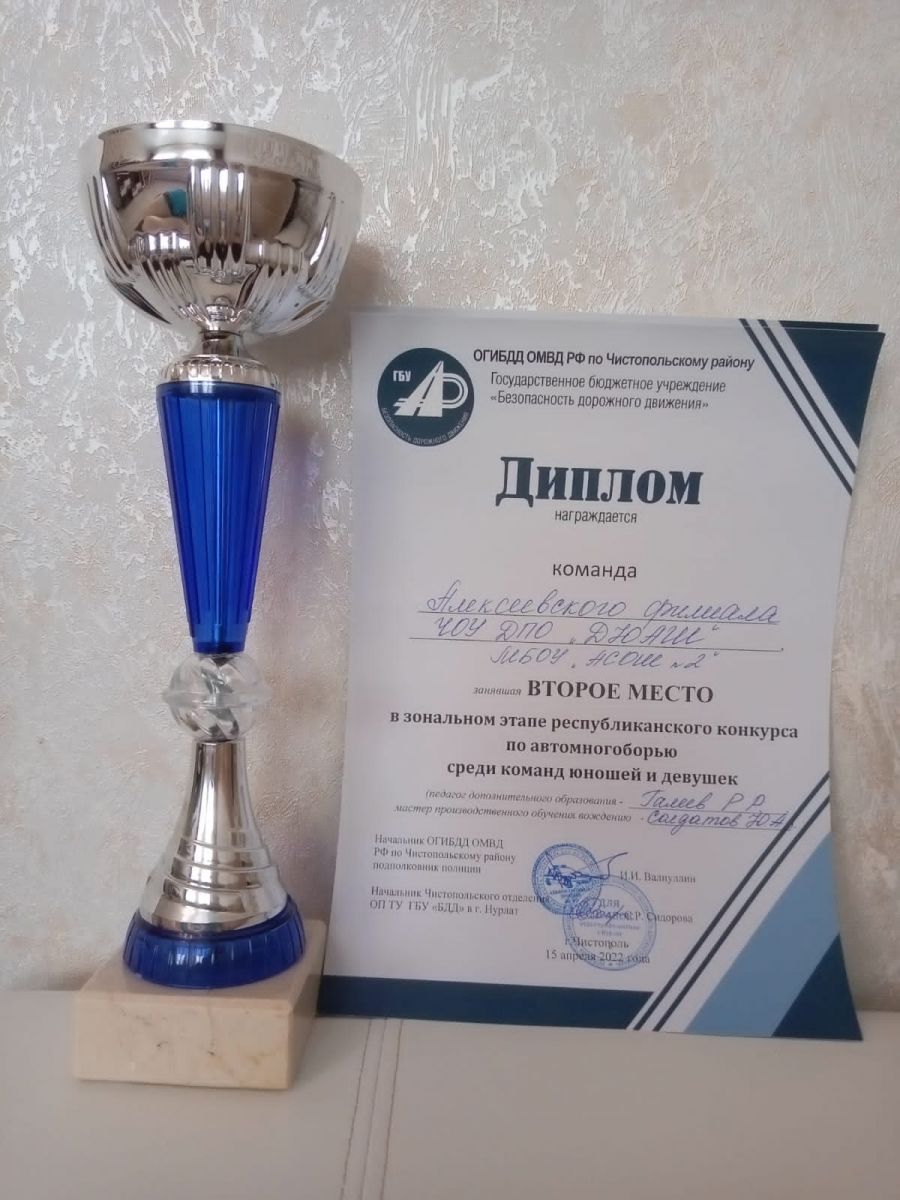 Опубликовано: 15.04.2022Поздравляем наших учеников Сафина Т., Козлову О. и Зайнуллину З., призёров зонального этапа республиканского конкурса по автомногоборью среди команд юношей и девушек. Наши ребята показали хорошие результаты, показав второй в республике результат. Пожелаем удачи нашим юным автомобилистам, которые поедут 20 апреля защищать честь Алексеевского района на республике. Молодцы!