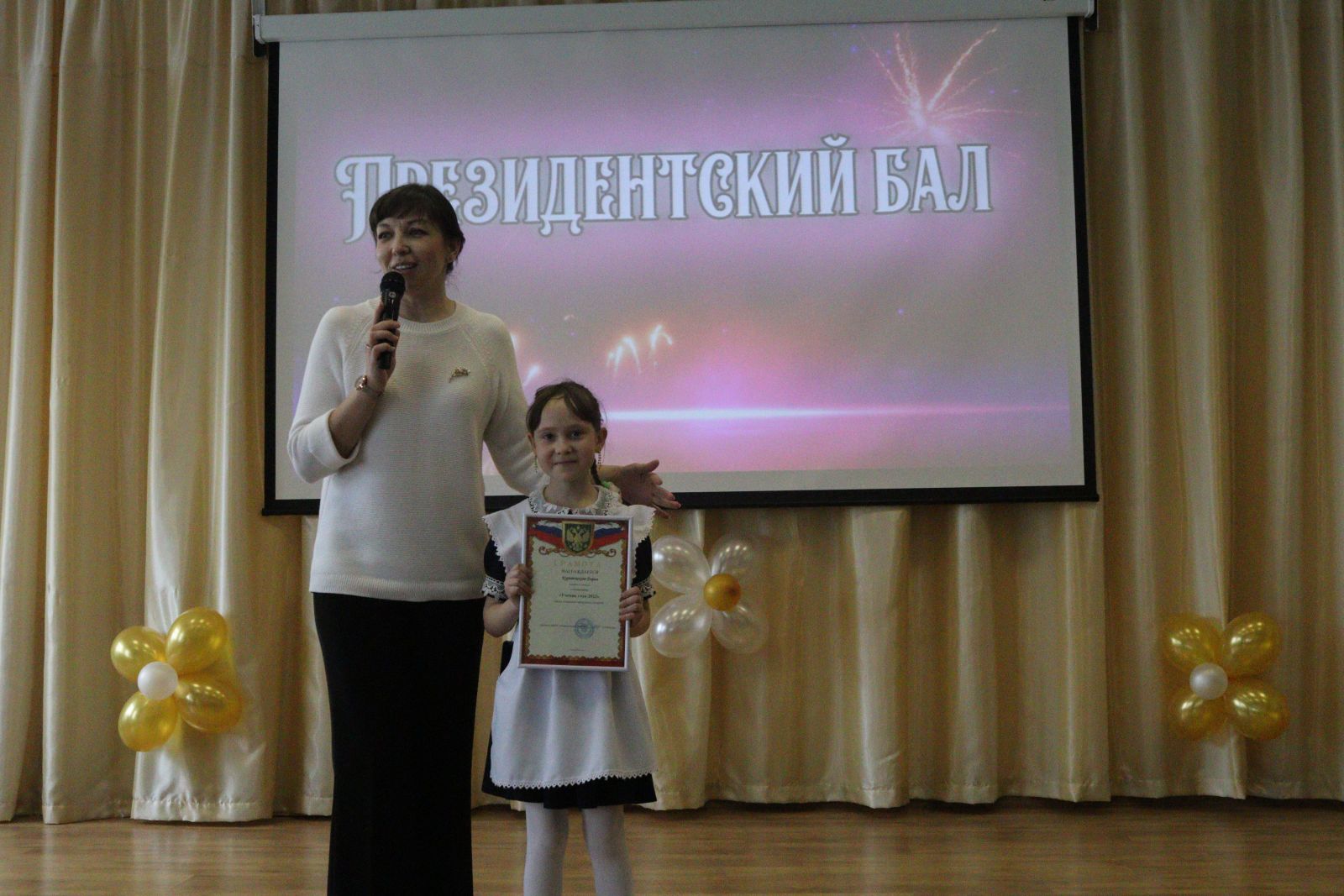 Опубликовано: 20.05.2022Вот и наступил долгожданный день! День, когда самые лучшие ученики школы были награждены за свои труды и достижения по итогам учебного года. Полный зал собрал сегодня родителей, учителей, учеников, благотворителей на самый грандиозный праздник года - "Президентский бал-2022". В течение двух с половиной часов были награждены 206 школьников по 9 номинациям, среди которых лучшие в олимпиадном движении, творчестве, спорте, учёбе, общественной жизни... Особой номинацией стала "Всесторонне развитая личность", в которой награды получили 18 учеников, проявившие себя в разных направлениях школьной жизни. Нельзя не отметить абсолютного победителя в школьном конкурсе "Ученик года начальных классов" - Курятникову Д., ученицу 4-в класса. Также были награждены учителя за высокие заслуги по итогам года.