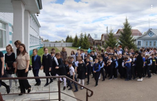 Бүген мәктәптә «Мәктәп бинасында шартлаткыч җайланма һәм теракт кылу мөмкинлеге табылганда персоналның һәм укучыларның гамәлләре»дигән тренировка эвакуациясе узды. Балалар һәм педагоглар эвакуацияне хәбәр итүгә тиз арада җавап бирделәр.
