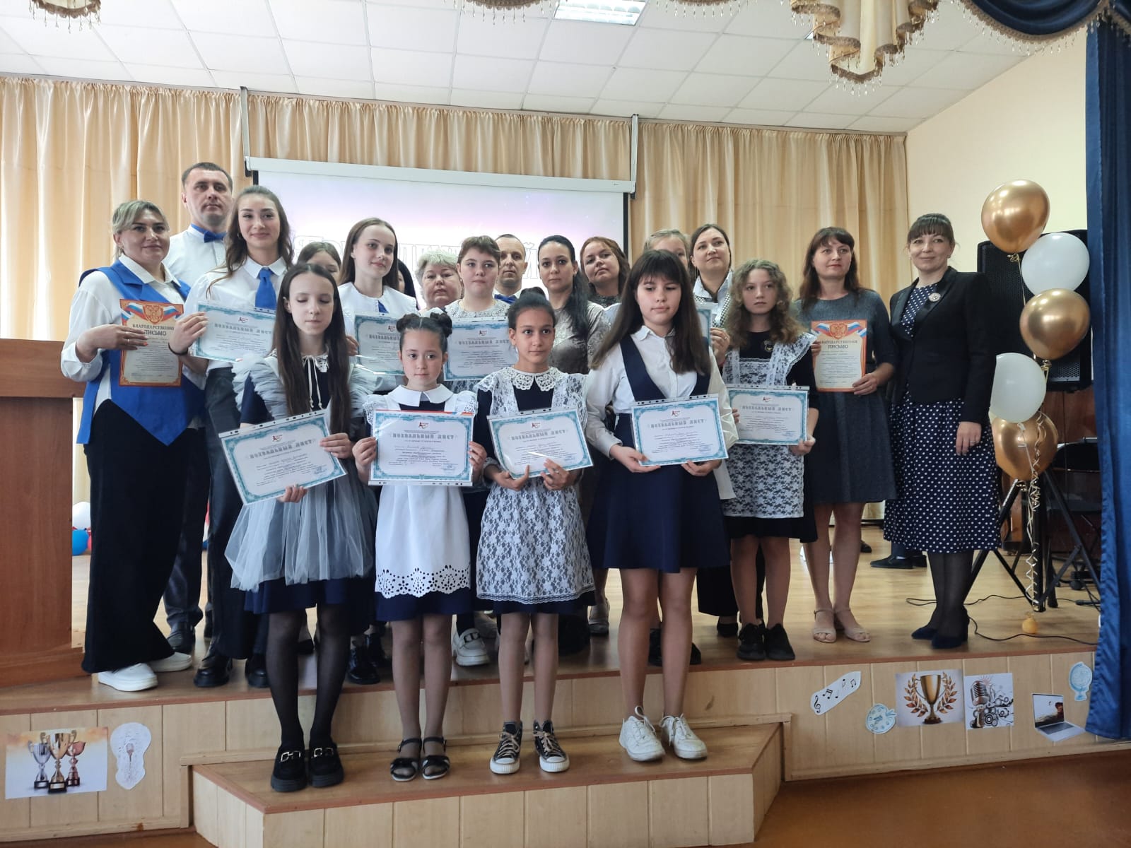 Опубликовано: 20.05.2023Ежегодный традиционный праздник "Президентский бал" прошел сегодня в нашей школе. Около 220 учеников, 57 родителей и 42 педагога чествовали по итогам 2022-2023 учебного года. В первой части приняли участие учащиеся начальной школы и их родители, во второй - учащиеся 5-11 классов. На сцене похвальным листом "За отличные успехи в учении" наградили отличников, грамотами выделили победителей номинации "Лучший дневник", победителей интеллектуальной игры "Что? Где? Когда?", победителя конкурса "Ученик года начальных классов", победителей и призёров предметных олимпиад, научно-практических конференций, творческих конкурсов, спортивных соревнований. В номинации "Лидер года-2023" были отмечены лучшие из лучших! Благодарственными письмами отмечены призёры финала Республиканского конкурса "Секреты дружного класса" - родительский комитет 8-а класса. В заключении благодарностями награждены учителя школы.