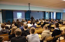 В ходе лекции В.А.Осянин рассказал о поисковой операции, о важности знать историю своей семьи, чтить память о тех, кто освобождал мир от нацизма. -