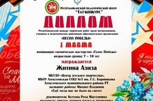 Ученица 3 класса Азиза Житина приняла участие в Республиканском конкурсе творческих работ среди воспитанников, учащихся и педагогических работников образовательных организаций «Весна Победы». Азиза очень хорошо выступила и была награждена дипломом за I место в номинации "Сценическое мастерство «Голос Победы»". Поздравляем Азизу и ее руководителя, учителя родного (татарского) языка и литературы Кутуеву Розу Магсумовну. Желаем дальнейших успехов и побед!