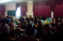 Перед диктантом была проведена викторина, а также показаны видеоролики о деятельности Русского географического общества. В "разминке" перед диктантом отличились учитель биологии Дубровина Н.Б., учитель истории Боровкова М.В., Абакумов А.Н., директор школы Фомин О.Ю., а также ученик 9 А класса Чунин Анатолий. Блестящие знания географии показал ученик 8 Б класса Мирзагалиев Айназ, перечислив все моря, омывающие берега России. Кроме этого, Пашагина Анастасия, ученица 8 А класса, представила свой фильм "Храмы на камских берегах", который очень понравился зрителям. По единодушному мнению участников,вопросы диктанта были довольно трудными, но очень интересными. Надеемся, что в следующем году число желающих проверить свои знания в географии будет еще больше.