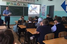 11 сентября начальник ДОСААФ Алексеевского района для учеников 7 а и 7 б классов провёл Урок Мужества «Иду на таран» о летчике герое Советского Союза Викторе Талалихине.