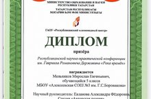 Мельников Мирослав, ученик 5 А класса, стал призёром Республиканской научно- практической конференции имени Гавриила Романовича Державина «Река времён...», которая прошла в 15 февраля 2023 года
