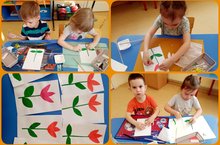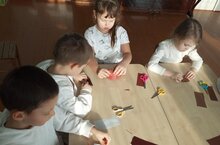 Дети средней группы закрепили навык работы с ножницами, клеем и кистью. Они вырезали из прямоугольника листья, лепестки, стебель для красивого цветка. Дети были довольны итогом своих работ./Урта төркем балалары кайчы, җилем һәм пумала белән эшләү осталыгын ныгыттылар. Алар чәчәккә кәгазьдән яфраклар, сабак кистеләр. Балалар үз эшләренең нәтиҗәләреннән канәгать калдылар.