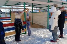 Ученики 1 класса положили хлебные крошки в кормушки на территории нашей школы. -
