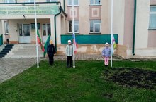 По традиции сегодня наши ученики спустили государственные флаги./Традиция буенча бүген укучыларыбыз дәүләт флагларын төшерделәр.