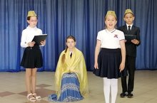 Сегодня в школе прошел школьный этап республиканского конкурса театрализованных постановок «Юные герои Великой Победы». Все классы подошли к конкурсу творчески, с большим интересом: готовили декорации, костюмы, разучивали роли. Несмотря на то, что учащиеся еще малы, они очень уверенно держались, мастерски играли и изображали своих героев. Жюри внимательно следило за выступлениями. Мероприятие прошло интересно.