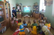 В рамках недели безопасности, которая была организована с 20 по 24 сентября, сотрудники Госавтоинспекции посетили нашу школу. Они на практике проверили знания детей, напомнили о безопасном поведении на дорогах, показали обучающий мультфильм./ 20-24 сентябрь көннәрендә оештырылган "Куркынычсызлык атнасы" кысаларында Дәүләт автоинспекциясе хезмәткәрләре безнең балалар белән очраштылар. Алар практикада балаларның белемнәрен тикшерделәр, юлларда үз-үзеңне тоту кагыйдәләрен искә төшерделәр һәм тематик мультфильм күрсәттеләр.