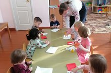 В режиме дня в группе раннего возраста прошло занятие нетрадиционным способым рисования- пальчиками. Малыши совместно с воспитателем Барминой А. В. разукрашивали фрукты и грибочки, тем самым закрепили цвета:жёлтый, красный. В такой деятельности важным является сам процесс творчества, ребёнок искренне удивляется, получает удовольствие от своей работы, начинает верить в свои силы.