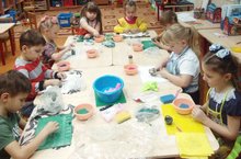 Дети старшего дошкольного возраста начали заниматься в кружке по лепке «Волшебная глина». Работа с глиной является средством развития творческих способностей детей.На занятиях они знакомятся с народно-прикладным искусством русского народа.Народное творчество учит видеть и понимать прекрасное в окружающей нас жизни, формирует художественный вкус, вызывает у детей лучшие чувства, желание что-то сделать самим, перенимая у народных мастеров несложные приемы, воспитывает чувство уважения к людям труда, чувство гордости к Родине, природе