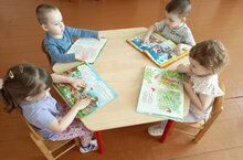 Сегодня ребята первой младшей группы устроили просмотр детских книг, и пусть малыши пока не умеют читать сами, но они с интересом рассматривают яркие и красочные иллюстрации, учатся бережно относиться к ним. -