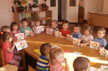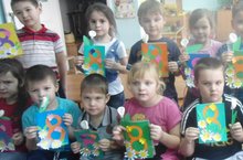 Дети первой младшей группы, сделали поздравительные открытки своим любимым мамам, в честь праздника 8 марта