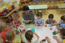 Во второй младшей группе воспитатель Галимзянова Г.М., проводила занятие по художественному творчеству на тему: «Путешествие по осеннему лесу». Где дети учились передавать в рисунке образ осеннего леса, используя нетрадиционные техники рисования; видеть связь между предметами, располагать их в определенном порядке, создавая сюжет.
