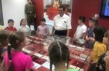 7 июня воспитанники пришкольного лагеря посетили Музей боевой славы. Для ребят была проведена очень интересная и познавательная экскурсия. В музее ребят радушно встретил Андрей Константинович. Он рассказал воспитанникам о событиях Великой Отечественной войны, познакомил детей с тематикой экспонатов музея, большая часть которых посвящены «Великой Отечественной войне». Ребята с удовольствием слушали, отвечали на вопросы и с любопытством рассматривали экспонаты./7 июньдә мәктәп яны лагеры тәрбияләнүчеләре Сугышчан дан музеена экскурсиягә бардылар. Музейда балаларны Андрей Константинович җылы каршы ала. Ул тәрбияләнүчеләргә Бөек Ватан сугышы вакыйгалары турында сөйләде, балаларны музей экспонатларының тематикасы белән таныштырды. Балалар рәхәтләнеп тыңладылар, сорауларга җавап бирделәр һәм экспонатларны кызыксынып карадылар.