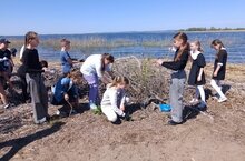 Четвероклассники в рамках акции ,,Чистая вода" убирались у берегов реки./Дүртенче сыйныф укучылары, "Чиста су" акциясе кысаларында елга ярларын җыештыралар. 22.05.2024