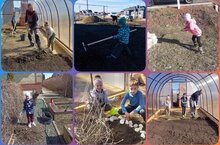 Безнең укучыларыбыз әти-әниләренә йорт яны территорияләрендә санитар тәртип урнаштыруда ярдәм итәләр. Алар теләсә нинди мөмкин булган эшне башкаралар: әти-әниләре белән бергә коймаларны буйыйлар, агачларны агарталар, ташландык чүп-чарны җыялар, себерәләр һәм хәтта чәчәк түтәлләрен дә казырга булышалар.