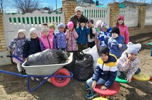 Дети и воспитатели старшей группы приняли участие в экологическом субботнике./Өлкән төркем балалары һәм тәрбиячеләре экологик өмәдә катнаштылар. 16.04.2024