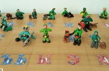 В преддверии Дня Защитника Отечества в подготовительной группе провели занятие по лепке "Пограничник с собакою". Целью занятия было обобщить знания о службе пограничников. Дети закрепляли умение лепить человека и животного, передавать характерные черты образа./Ватанны саклаучылар көне алдыннан әзерлек төркемендә "Эт белән пограничник" ясау буенча дәрес үткәрелде. Дәреснең максаты чик сакчылары хезмәте турында белемнәрне гомумиләштерү иде.