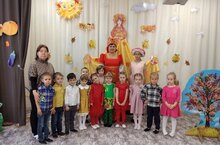 В средней группе прошел праздник осени. К детям на праздник пришли бабушка и царица Осень. Дети пели песни, танцевали, играли в игры. В конце праздника Осень угостила детей гостинцами./Урта төркемдә көз бәйрәме узды. Балаларга бәйрәмгә Көз патшабикәсе килде. Балалар җырлар җырладылар, биеделәр, уеннар уйнадылар. Бәйрәм ахырында Көз балаларны күчтәнәчләр белән сыйлады.