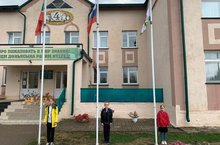 Началась учебная неделя и по традиции учащиеся подняли государственные флаги./Уку атнасы башланды һәм традиция буенча укучылар дәүләт флагларын күтәрделәр.