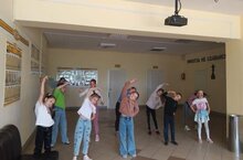 Воспитанники пришкольного лагеря ,,Солнышко" вместе с весёлой, бодрой музыкой выходят на утреннюю зарядку. Зарядка поднимает настроение, укрепляет здоровье и повышает работоспособность./Мәктәп яны лагеренда тәрбияләнүчеләр күтәренке музыка белән бергә иртәнге зарядкага чыгалар. Зарядка кәефне күтәрә, сәламәтлекне ныгыта һәм эшчәнлекне арттыра.