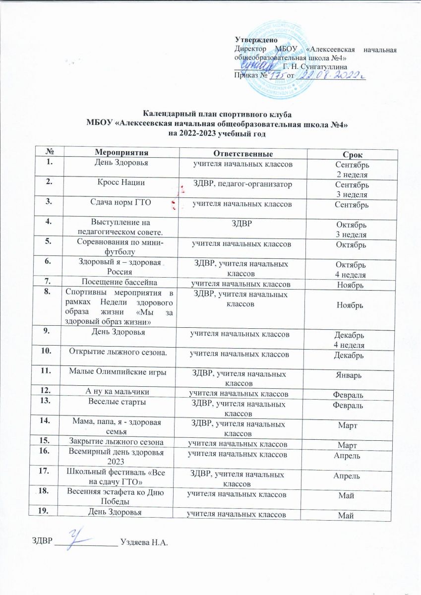 Календарный план ШСК на 2023-2024 учебный год