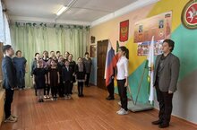 Утро понедельника 16 февраля началось традиционно с выноса флагов, исполнения гимнов РФ и РТ, общешкольной линейки.