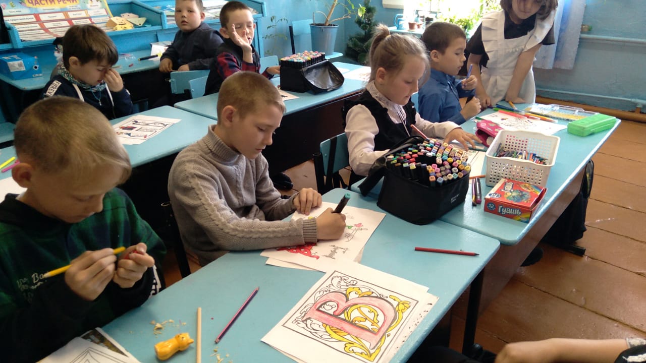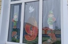 Ученики разместили на окнах школы наклейки, посвящённые 9 мая.