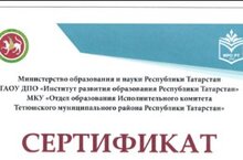 Ученица 7 класс Константинова А. и учитель русского языка и литературы Абдуллина О.А. награждены сертификатом участника в IV Республиканской научно-практической конференции "Научный потенциал - XXI". Конференция организована ГАОУ ДПО «Институт развития образования Республики Татарстан» совместно с МКУ «Отдел образования Исполнительного комитета Тетюшского муниципального района Республики Татарстан» и МБОУ «Тетюшская средняя общеобразовательная школа №1 имени Героя Советского Союза Ханжина Павла Семеновича».