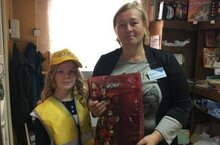 Отряд ЮИД «Зелёный огонёк» поздравили работника почты Мурадымову О.В.