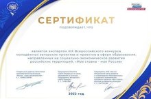 Учитель химии и биологии является экспертом XIX Всероссийского конкурса молодежных авторских проектов и проектов в сфере образования, направленных на социально-экономическое развитие российских территорий, "Моя страна - моя Россия"