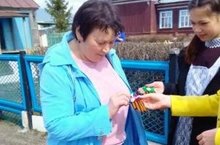 Обучающиеся школы изготовили своими руками Георгиевские ленты и раздали их жителям села...