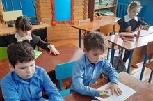 В рамках проходящего в школе месячника военно-патриотического воспитания ученики первого класса с классным руководителем Чеклауковой Г.М. написали письма участникам СВО
