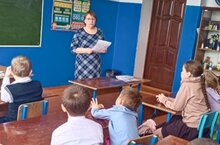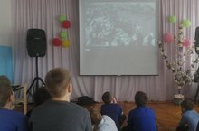 Воспитатель ГПД Хныченкова В.И. с учащимися 1-5 классов посмо трели фильм, посвящённый М.Джалилю и джалиловцам
