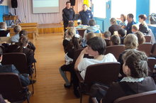 30 апреля в нашей школе побывали гости. В рамках предстоящей недели безопасного дорожного движения, Хусаинов Рустем Жавдатович провёл профилактическую беседу для учащихся о правилах дорожного движения и предупреждении ДТП среди несовершеннолетних