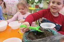 Сегодня наши дети с увлечением и на перебой занимались высадкой лука.Сначала мы приготовили землю,полили её.