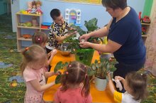 Один из работы по воспитанию трудолюбия в детском саду - уход за комнатными растениями.