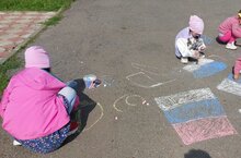 Завершилось мероприятие рисованием мелками на асфальте.Дети рисовали и раскрашивали Российский флаг. -