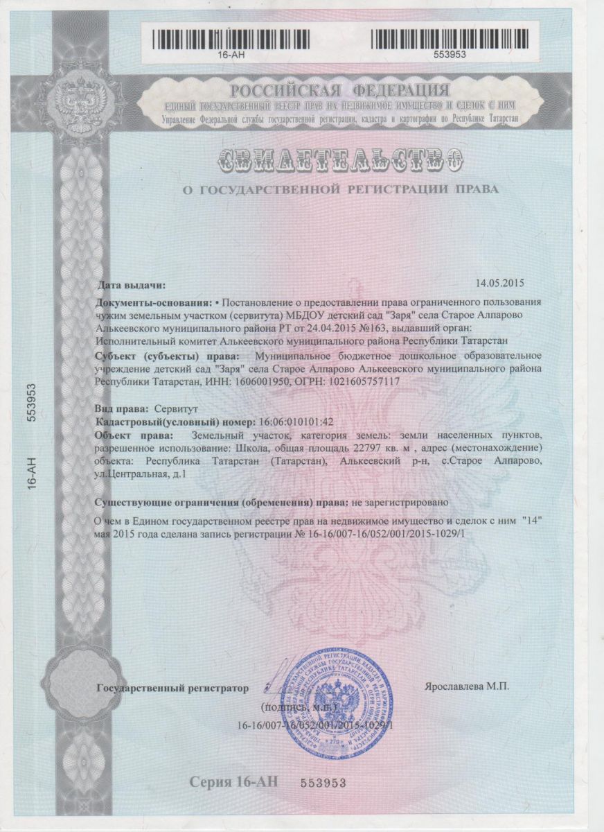 Короткое название: МБДОУ детский сад "Заря" с.Старое Алпарово
