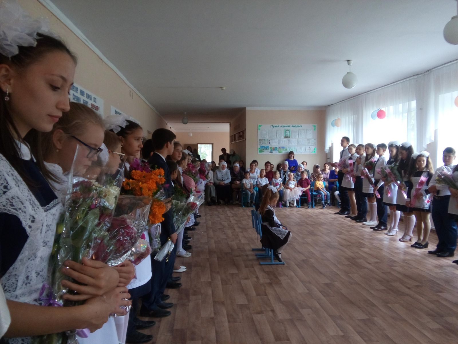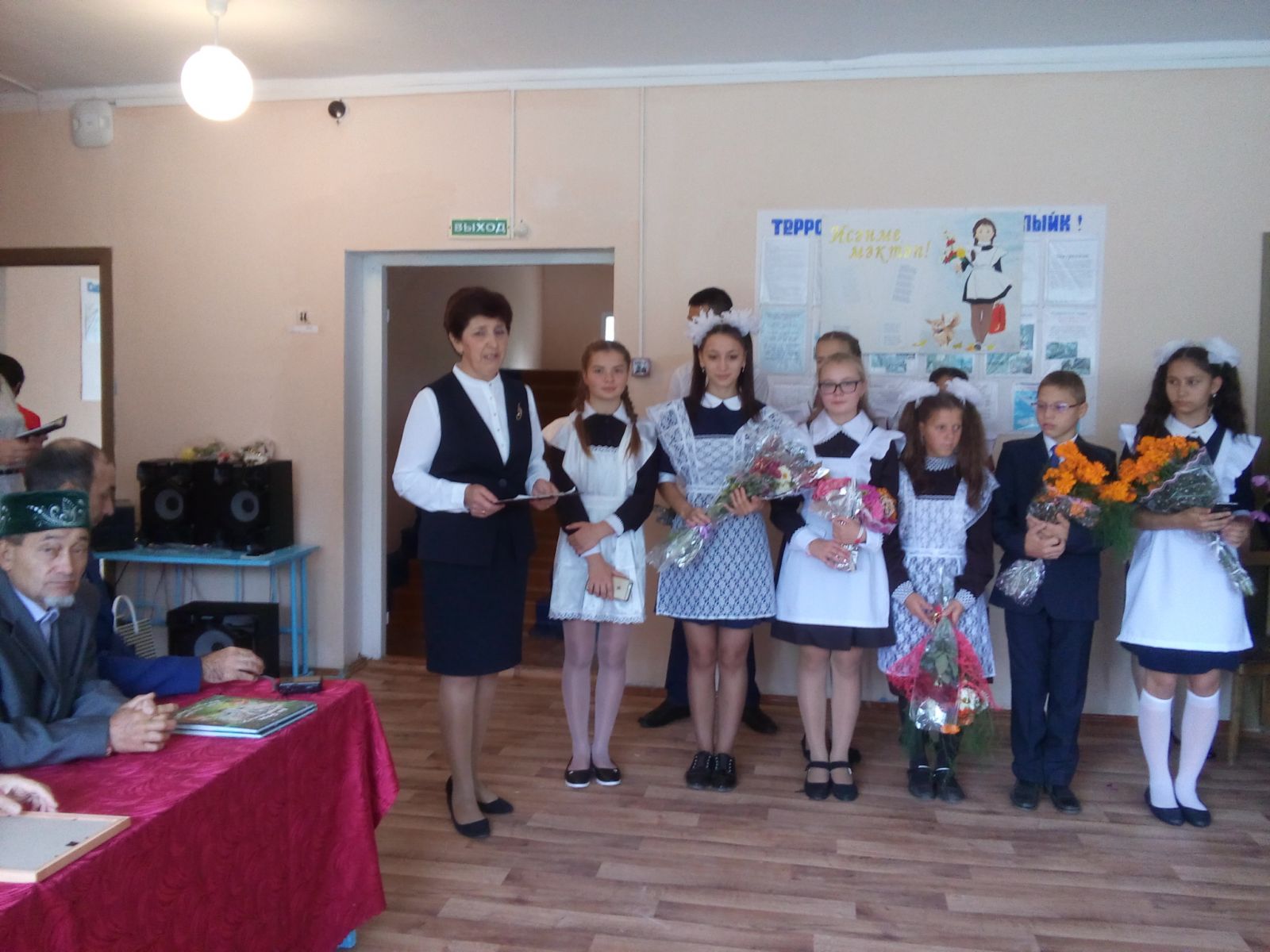 Белем көне тантаналы линейка белән башланып китте. Килгән кунаклар 1 нче сыйныфка керүче балаларны бүләкләделәр, укуларында уңышлар теләделәр. Ветеран укытучылар тарафыннан җылы сүзләр әйтелде.