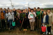 Сегодня учащиеся нашей школы приняли участие во Всероссийском экологическом субботнике "Зелёная Россия". Они посадили более 200 деревьев и кустарников на территории лыжной базы.