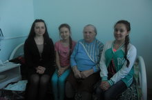 Члены ученического самоуправления школы вместе с ОДК Садыковой Л.М. навестили детей войны в терапевтическом отделении центральной районной больницы. Данилина Анна Андреевна, дитя войны, вдова инвалида войны, житель села Юхмачи, 1933 года рождения. Галлямов Рифкать - тоже дитя войны, 1931 года рождения, житель Чувброда. Учащиеся подарили им открытки, сделанные своими руками, вручили продуктовый пакет, побеседовали об их жизни, детстве в военное время. Затем они спели песни на русском и татарском языках, рассказали стихи. фото